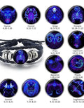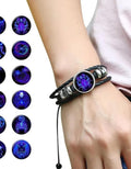 Multilayer Constellation Zodiac Leather Bracelet Vintage Black Leather Bracelet